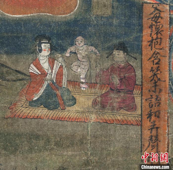 圖為“報父母(mu)恩重經變絹畫”中的“父母(mu)懷抱含笑未(wei)語和弄聲時”的畫面。(資料圖)甘肅(su)省(sheng)博物館供圖