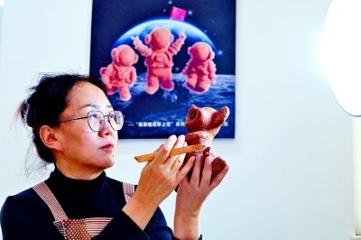 烏(wu)海“黃河泥娃(wa)”傳承人張(zhang)勇在制(zhi)作泥娃(wa)。光明日報記者 郭俊鋒攝(she)