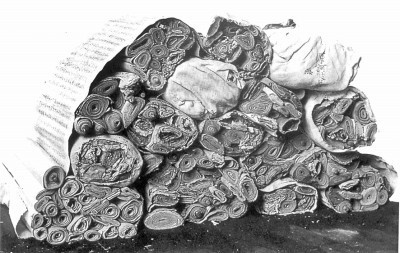 敦煌(huang)(huang)寫卷剛剛從(cong)藏經(jing)洞中拿出的樣子 圖(tu)片選自《滿世界尋找敦煌(huang)(huang)》
