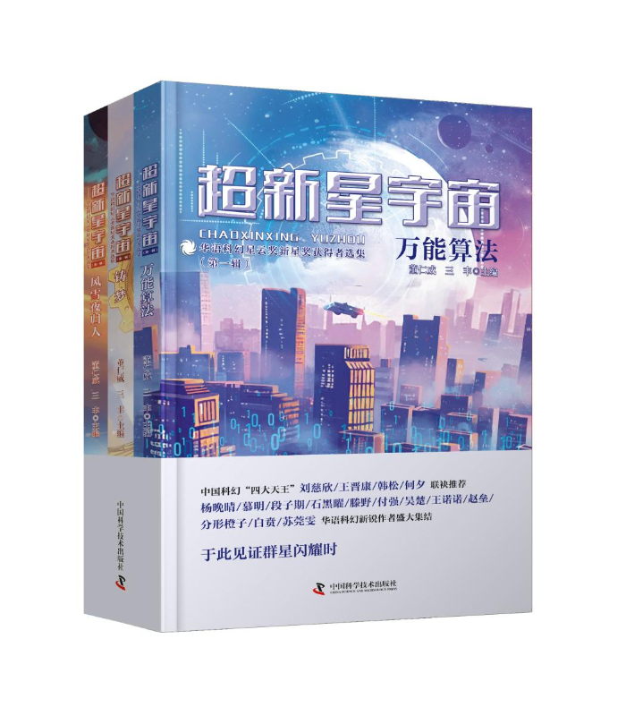 《超新星宇宙》由著名科(ke)普科(ke)幻作家董仁威、著名科(ke)幻學(xue)者三豐主編,第(di)一輯分(fen)為《萬能算(suan)法》《鑄夢》《風雪夜歸人(ren)》共三冊,收錄了榮獲(huo)第(di)十(shi)、十(shi)一、十(shi)二屆(jie)華(hua)語科(ke)幻星云獎2016-2020年度新星獎獲(huo)得者楊晚晴、慕明(ming)、段(duan)子(zi)期(qi)、石黑曜、滕野、付(fu)強、吳楚、王諾諾、趙壘、分(fen)形橙(cheng)子(zi)、白賁、蘇莞雯等12名新銳作者的18篇作品。