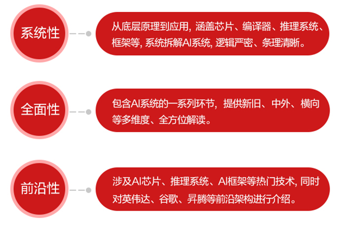 系統(tong)性與(yu)全(quan)棧(zhan)視(shi)角(jiao)。《AI系統(tong):原(yuan)理與(yu)架(jia)(jia)(jia)構(gou)(gou)》更側重以系統(tong)架(jia)(jia)(jia)構(gou)(gou)視(shi)角(jiao)看(kan)待(dai)人工智(zhi)能,而不是(shi)拘(ju)泥于特定深(shen)度(du)學習算法。本書從AI系統(tong)的(de)整體概(gai)況出發(fa),分為AI硬件(jian)與(yu)體系結構(gou)(gou)、AI編譯與(yu)計算架(jia)(jia)(jia)構(gou)(gou)、AI推(tui)理系統(tong)與(yu)引擎、AI框架(jia)(jia)(jia)核(he)心(xin)模(mo)塊四篇進行闡述,深(shen)入(ru)探討了AI系統(tong)背后從底層(ceng)到應用(yong)的(de)軟硬件(jian)全(quan)棧(zhan)架(jia)(jia)(jia)構(gou)(gou),為讀者提供了一個(ge)全(quan)面的(de)學習路徑。