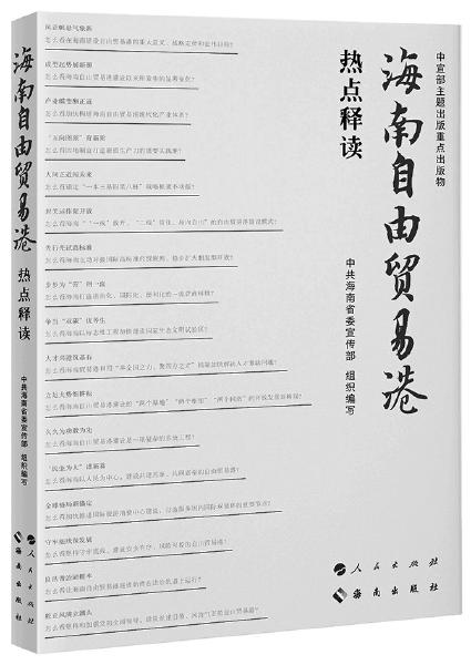 《海(hai)南(nan)自(zi)由(you)貿易(yi)港熱點釋讀》定位為一本通(tong)俗(su)理論讀物(wu),由(you)海(hai)南(nan)省委(wei)宣傳(chuan)部組織編寫,人民出版(ban)社(she)、海(hai)南(nan)出版(ban)社(she)聯合出版(ban),入選中宣部2024年主題出版(ban)重點出版(ban)物(wu)選題。