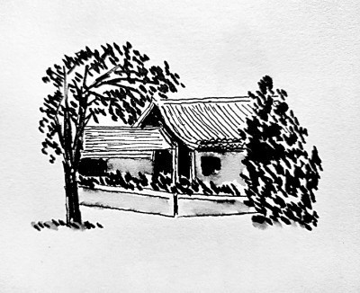 老槐(huai)樹旁(pang)的舊居(ju) 肖復興繪