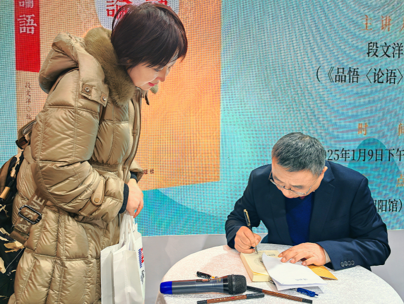 《品悟〈論語〉》一書(shu)作者(zhe)段文洋(yang)在活動現場為讀者(zhe)簽名