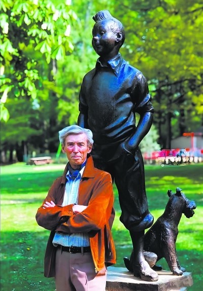 作者(zhe)埃(ai)爾熱與丁丁雕像合影