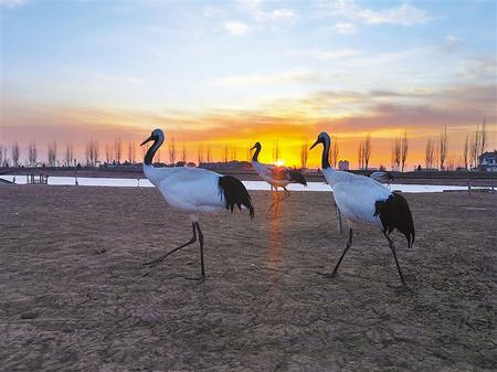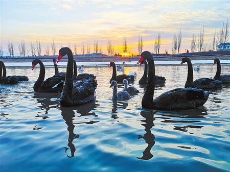 冬日的張掖國家濕地公園丹頂鶴、黑天鵝、朗德鵝、斑頭雁等沐浴在清晨的陽光下。這里良好的生態環境吸引了眾多候鳥棲息。通訊員 成 林