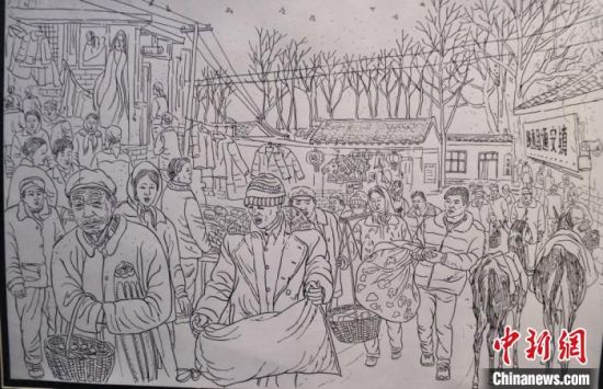 蘭州鋼筆畫愛好者手繪系列“臘月圖”,記錄“集市文化”,留住“年味”以感悟鄉愁。 閆姣 攝