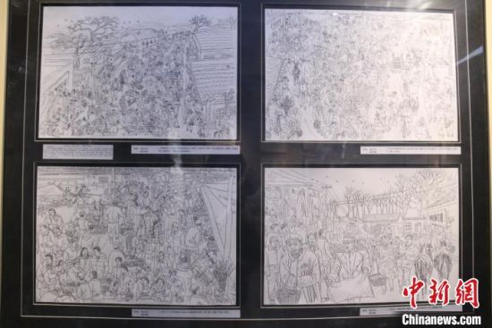 蘭州鋼筆畫愛好者周新平勾勒了數組關于鄉村記憶的鋼筆畫,其中,《隴西臘月圖》是他歷時三個多月,手繪了200多村民,完成的一幅舊時農民過年趕集的熱鬧圖景:賣糖葫蘆的小販、剪紙賀春的手藝人、趕車挑擔的趕集人……周新平說,他很怕“集市文化”將來被人們遺忘,用鋼筆記錄下來,留住記憶里的“年味”以感悟鄉愁。
