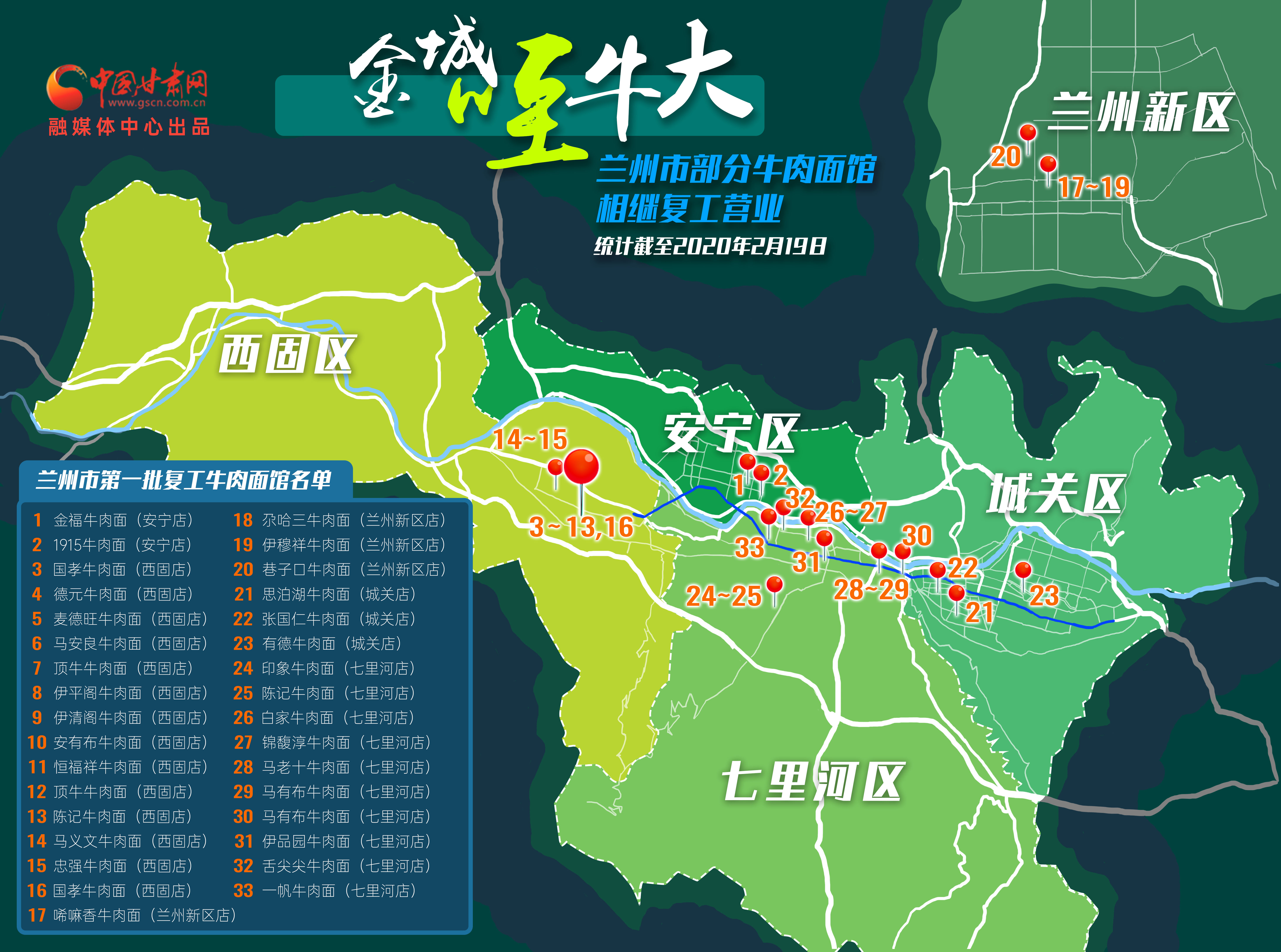 隨著一些企業和單位相繼復工,如何解決上班后部分職工的吃飯問題,成了社會熱點話題。尤其是深受蘭州人喜愛的“牛大”,更是備受關注。據了解,截止2月19日,蘭州已有33家牛肉面館恢復營業。