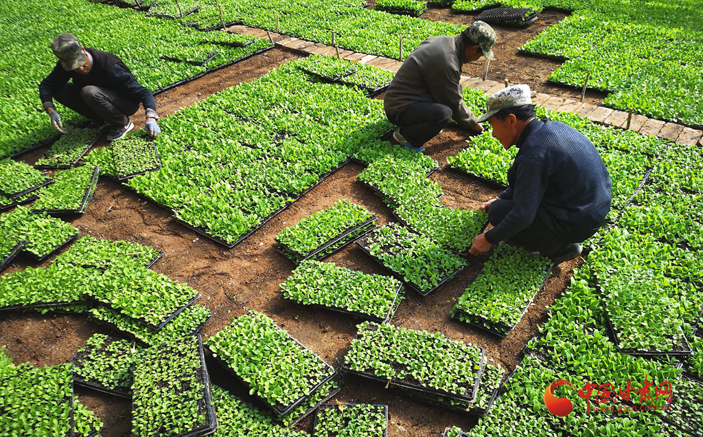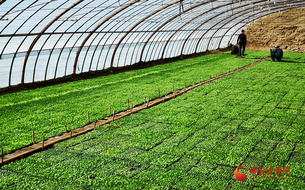 2月25日,位于祁連山下的張掖市甘州區烏江鎮菜農大棚里,萵筍苗和娃娃菜苗青翠欲滴,菜農正在忙碌管理,一派春意盎然。