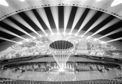 華夏文化展(zhan)示(shi)(shi)中心分為展(zhan)演(yan)區(qu)(qu)與(yu)展(zhan)示(shi)(shi)區(qu)(qu)兩個部分,展(zhan)示(shi)(shi)區(qu)(qu)為古鎮式商(shang)業街,目(mu)前已進入(ru)收尾階段,展(zhan)演(yan)區(qu)(qu)為大型激光(guang)水(shui)舞(wu)秀劇場(chang)——日月(yue)館(guan),去(qu)年已試運營,效果(guo)極佳。別名“黃河(he)巨蛋(dan)”的(de)(de)(de)日月(yue)館(guan)總(zong)用地(di)面積為12000平方米(mi)(mi),場(chang)館(guan)外形呈半橢圓形,由兩片獨(du)(du)立(li)的(de)(de)(de)頂棚覆蓋,場(chang)館(guan)高30米(mi)(mi),寬約80米(mi)(mi),內設觀眾席位(wei)1450座。場(chang)館(guan)屋頂的(de)(de)(de)天眼開口(kou)和場(chang)館(guan)地(di)面體(ti)現(xian)了中國天圓地(di)方的(de)(de)(de)理念以及太陽和月(yue)亮的(de)(de)(de)互相(xiang)映襯(chen)。外立(li)面采用了與(yu)當地(di)傳統屋頂瓦片相(xiang)呼應(ying)的(de)(de)(de)獨(du)(du)特(te)形狀(zhuang),又像(xiang)鳥兒(er)折疊的(de)(de)(de)翅膀和羽毛,極富活力(li)和寓意。