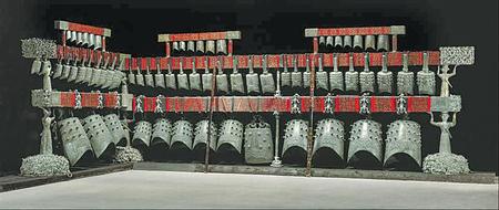 打擊樂器,斜掛的鐘稱之為甬鐘,直懸的鐘稱之為鈕鐘。