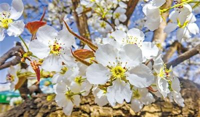進入古梨園,看見古梨樹雖然沒有綠葉的襯托,但粗壯遒勁的枝干上開出簇簇潔白的梨花,樹皮的皴皺變得模糊,整個古樹也變得清新雅麗、溫婉可人起來,再看著樹下白墻青瓦的村屋,會讓人一下子忘掉冬天,這就是人們為什么愛在春天逛古梨園的原因吧。