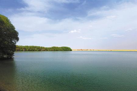 在渥洼池畔舉目遠眺,在阿爾金山皚皚白雪的映襯下,偌大的渥洼池顯得安靜祥和,廣闊的水域就像一面鏡子,鑲嵌在大漠深處,在陽光的折射下顯得格外深邃而內斂。渥洼池畔茂密的灌木林和高大密集的蘆葦蕩,將一汪湖水浸染的泛著黛綠,蘆葦和灌木在湖水滋潤下郁郁蔥蔥,高低錯落有致,大有阡陌縱橫之勢。西岸不遠處,南北迤邐著一座兩公里有余的沙坡頭,猶如一條盤旋的黃龍,亙在湖水的西邊搖頭擺尾,它曾經以每年兩至三米的速度,肆無忌憚地向渥洼池水域逼進。不過,在陽關保護區的精心培育下,一片密集的蘆葦,已經爬到了沙梁頂上,將這條黃龍死死地鎖在原地,動彈不得。