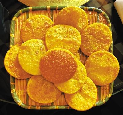 這是一道含蓄的小吃,雖名為糖油糕,實際上它外形也有點像當地的油香(一種油餅),一定需要趁熱吃,吃到里面的“糖心”,舌尖會感覺到那層糖隱隱還似呈流動狀,因為制作它需要用沸水燙面,在有的地方它也叫“燙面油糕”,我覺得還是“糖油糕”更好,因為那種酥軟甜香才是它最勾魂的地方。