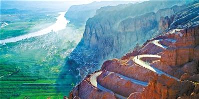 二十二道彎:落差206米的盤山路,近180度的彎道22個坡陡彎急,路旁巍峨石峰視線所及是黃河曲流、綠洲農莊,俯瞰是最震撼動人的角度。