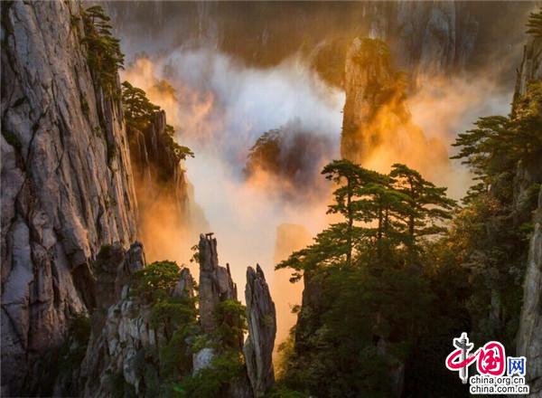 黃山享有“天下第一奇山”的美譽,黃山之奇就在于因特殊地質環境造就的奇松。懸崖優壑、萬仞之間,蒼松挺拔、姿態萬千。四季常綠的青松如畫筆在黃山隨處點染,給黃山抹上了鮮活的生命力。