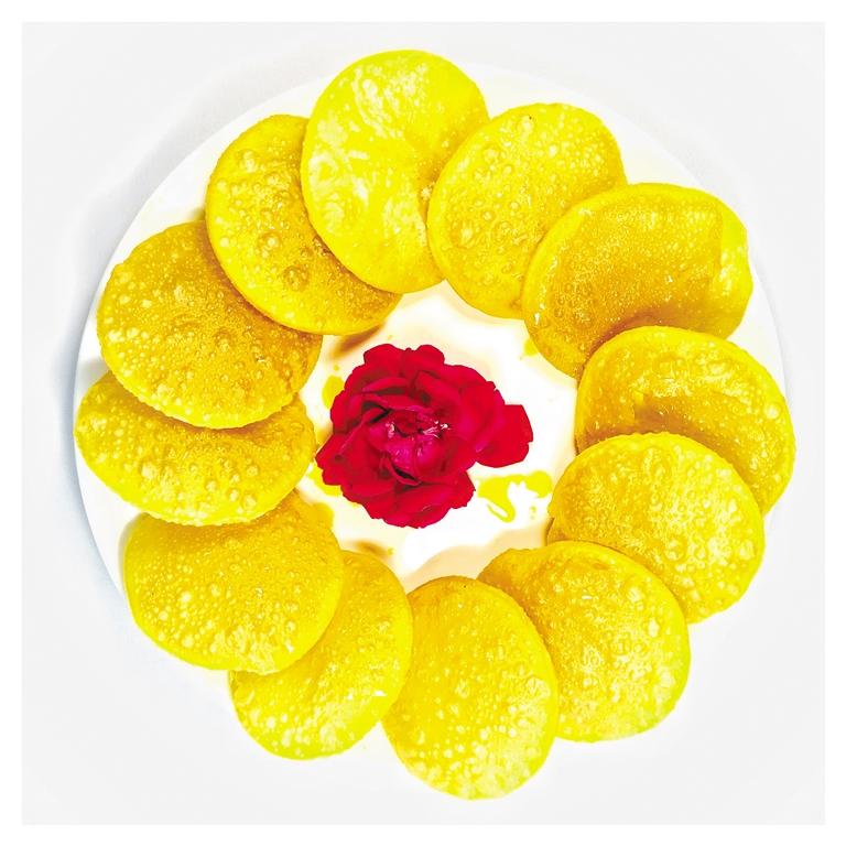 折橋灣的面食中,燙面油香的地位自比尋常,往往在冷熱拼盤交錯中,它已經被端上桌,因為它是折橋灣人家中最具象征意義的一種食物。油香炸得好不好,就可以衡量出這家農家樂廚師的技藝。