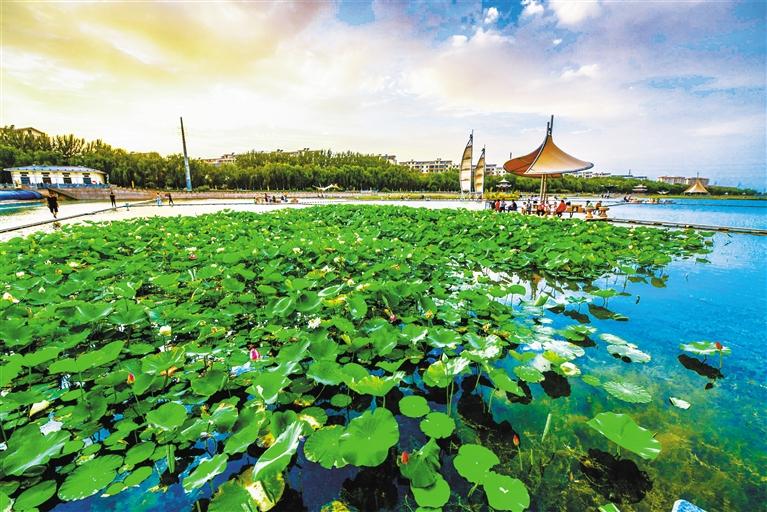 7月仲夏,甘肅敦煌黨河風情線水利風景區的荷花陸續開放,吸引了眾多敦煌市民和游客觀光游覽,賞荷納涼。