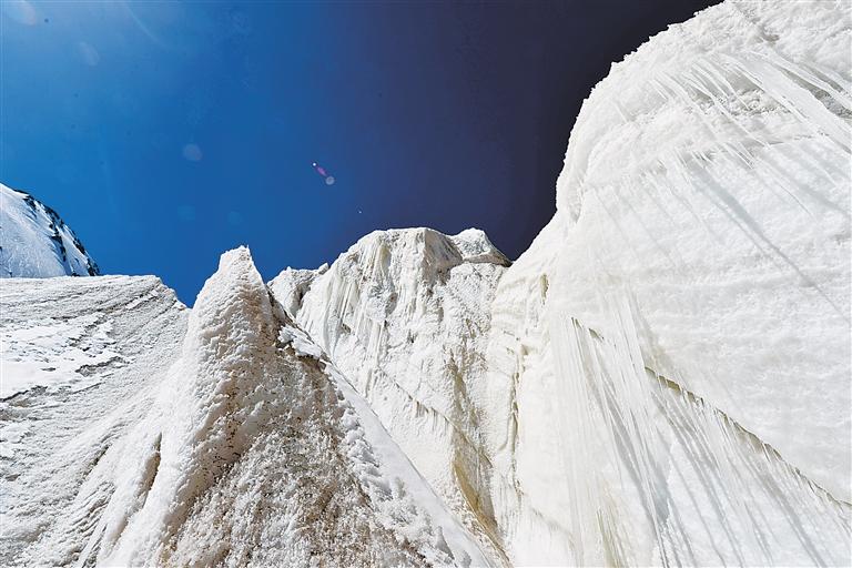 清《重修肅州新志》中的詩句“倚天則玉筍嶙峋,映日則瓊光璀璨”,正是透明夢柯冰川壯麗風光的真實寫照。