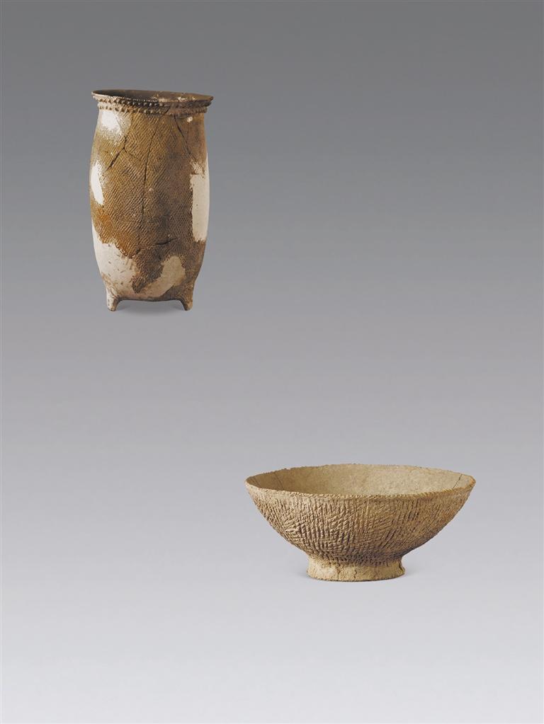 繩紋深腹罐 繩紋圈足紅陶碗