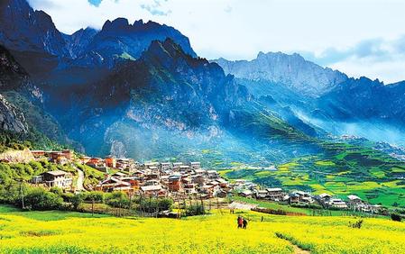 在銀裝素裹的雪山圍繞之中,是保留著最原生態的藏族村落。全木質的房屋、圍欄中的牦牛綿羊、從田地返回的熱情藏民、傍晚時山谷間繚繞的炊煙……全都是現代城市早就失落的質樸之美。