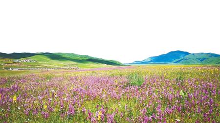 放眼望去,一切都變了樣,藍天、白云、碧湖、青草。身處一望無際的大草原上,心情也跟著豁然開朗起來。只見草原上的小徑像一條彩帶從云間散落,而遠處的行人似一個個小白點兒,零零散散地在彩帶上移動著。看上去是那么新鮮,那么充滿活力,宛如一幅流動的美麗畫卷。