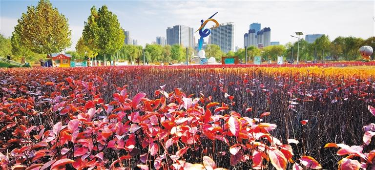 在暖陽的照射下,色彩斑斕的樹葉把這座西北重鎮裝點得多彩絢麗、如詩如畫。人們在公園、在街頭巷尾,享受著無邊的秋色。