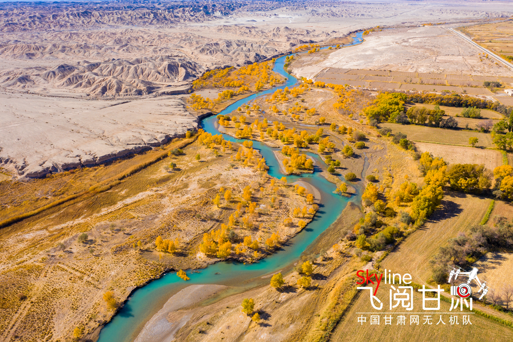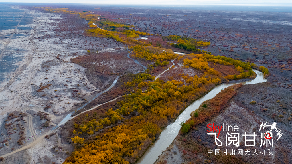 金秋十月,在疏勒河水的浸潤下,大片的胡楊金光閃爍,為古老的疏勒河古道繞上了一條金色的絲帶,為河西走廊增添了一道亮麗的色彩,疏勒河正在邁向河暢、景美、岸綠的生態文明發展之路。