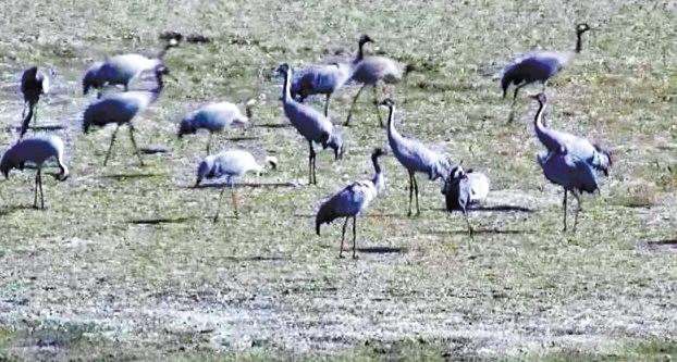 212只灰鶴“做客”敦煌陽關渥洼池濕地