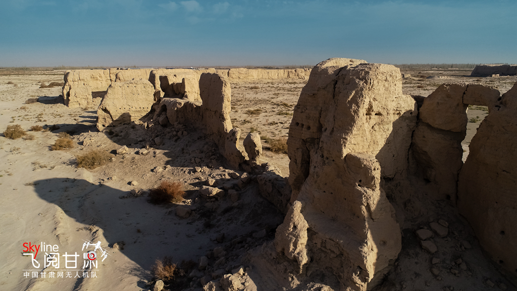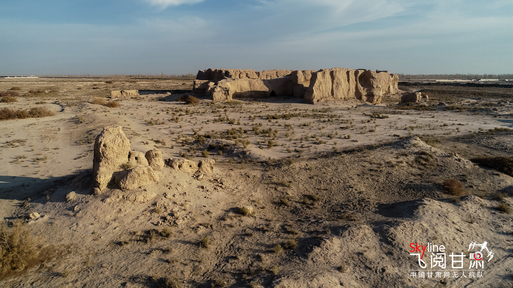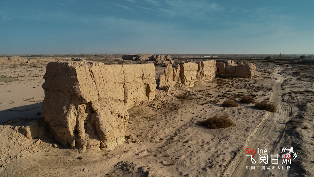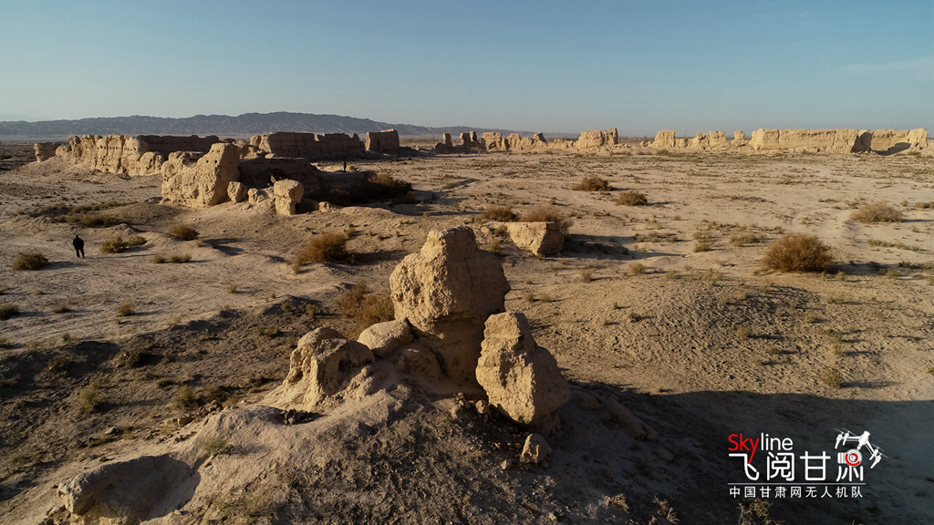 在酒泉瓜州縣南岔鎮的戈壁深處,六工城的殘垣斷壁在歲月的滄桑里屹立了2000多年,從空中俯瞰,至今依然能看清晰輪廓。