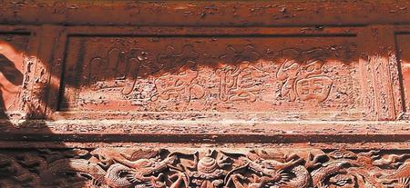 會館正殿東西兩側,各有一個小別院,幽靜一隅,別有洞天。別院門樓整體為磚雕裝飾,邊墻墻面各用一塊保存完好的磚雕裝飾。東別院磚雕為:“祥龍吐瑞”,也意左青龍。