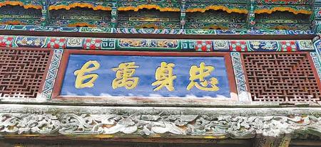 抱廈明間為“忠貞萬古”,雖沒有落款署名,但經書法專家根據左宗棠同時代書法墨跡鑒定為左宗棠手跡。書體顏體味很濃,功底深厚,氣象大氣。