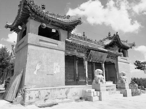 穿過山門,上山,已是下午4時,一輪白日,沒有堂皇,只有蒼涼。周圍的群山在沙塵中,隱約只能看到幾道折線。