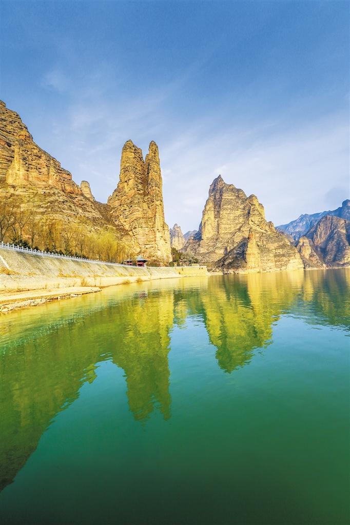 炳靈寺世界文化遺產旅游區的標志姊妹峰。首席記者 田蹊 攝