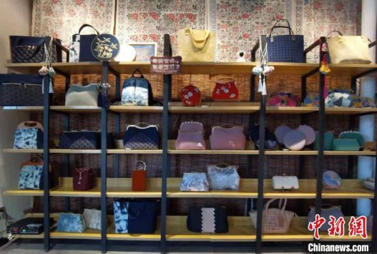 圖為祁輝純手工刺繡制作的時尚包展示。 張婧 攝