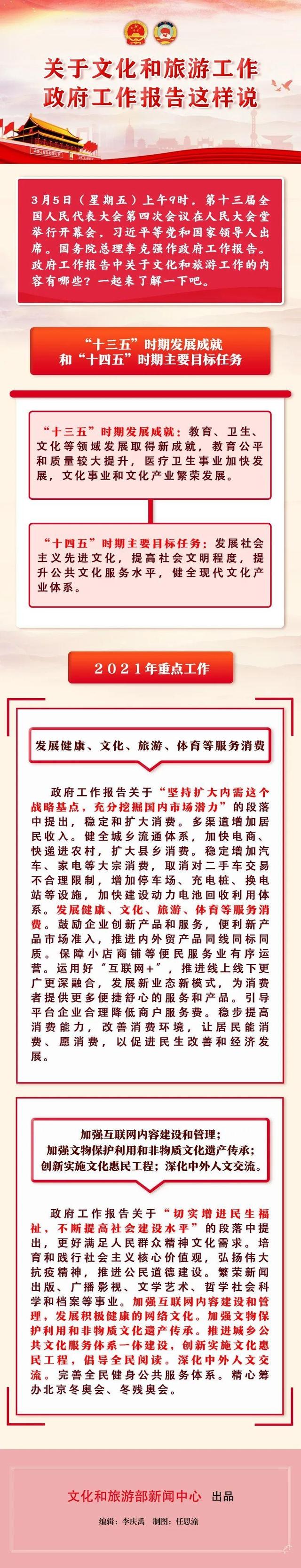 原標題:兩會:《政府工作報告》這樣說文化和旅游工作