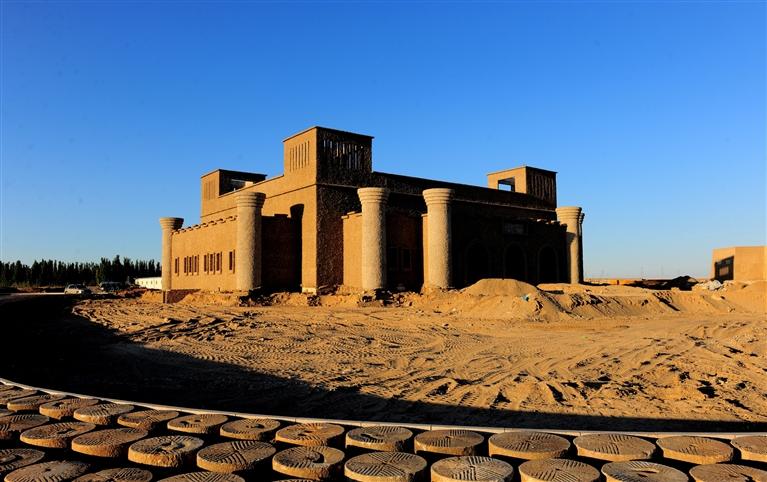走在磨盤大道上,逐一參訪已經建成的敦煌國際美術館、古化石館、佛教藝術館、中華根藝館、古錢幣館、絲綢之路館、彩陶館、玉文化館、栗亭硯館、青銅器館、隕石館、非遺館12個單體博物館、胡楊山以及正在建設中的沙漠寶藏館。