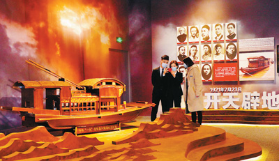 圖為觀眾在博物館參觀中共一大會址嘉興南湖紅船模型。 記者 賀勇 攝