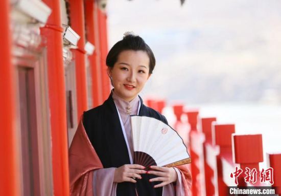 圖(tu)為蘭州青(qing)年身穿漢服在百年梨園(yuan)賞景。 高展 攝