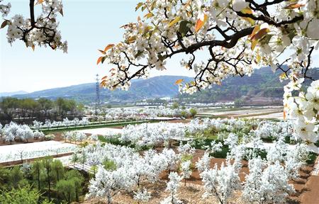 臨洮縣龍門鎮東三十里鋪村千畝梨花漸次盛開。