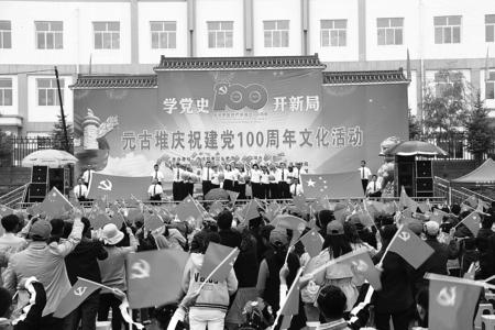 “東方升起(qi)了紅(hong)太陽,照的(de)大(da)地亮堂堂。習主席來到咱(zan)渭源,元古(gu)(gu)堆致(zhi)富(fu)著(zhu)領先(xian)。留得(de)輝(hui)煌著(zhu)在人間,好日子過著(zhu)嘛舒坦……”一場以“元古(gu)(gu)堆農民紅(hong)歌(ge)花(hua)兒(er)大(da)家唱”為(wei)主題(ti)的(de)快閃活動在元古(gu)(gu)堆村(cun)舉(ju)行(xing)。此次快閃活動共分為(wei)三(san)個(ge)部(bu)分,習近平總書記來到咱(zan)渭源、花(hua)兒(er)旅(lv)游產業發展(zhan)、紅(hong)歌(ge)大(da)家唱《沒有共產黨(dang)(dang)就沒有新(xin)中國》,再(zai)現了元古(gu)(gu)堆村(cun)從昔(xi)日的(de)“爛(lan)泥溝”變(bian)成“絢(xuan)麗(li)甘肅(su)·十大(da)美麗(li)鄉村(cun)”的(de)“前世今生”,唱響了“永遠跟(gen)黨(dang)(dang)走”的(de)時代主旋(xuan)律(lv)。