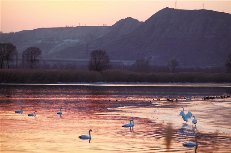 詩意大河 天鵝起舞 蘭州黃河沿岸成候鳥“天堂”