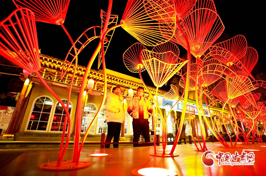 春節臨近,甘肅省張掖市甘州區文化廣場、公園等地,各種大型彩燈把城市裝扮得火樹銀花、璀璨繽紛,大街小巷彰顯著歡樂喜慶的節日氣氛,年味十足。