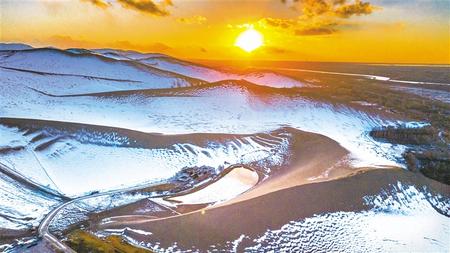 雪后初霽 敦煌鳴沙山月牙泉景區景色迷人