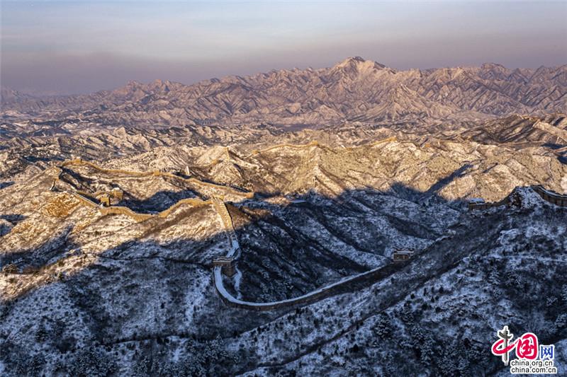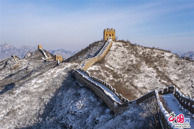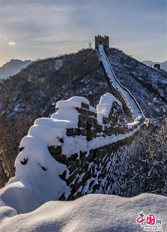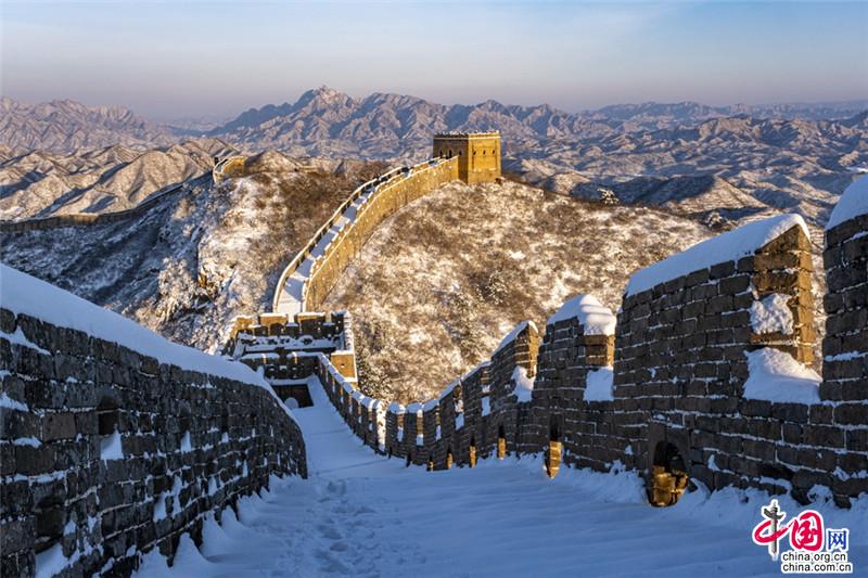 皚皚白雪覆蓋長城內外,銀裝素裹金山嶺(ling)氣勢磅礴。