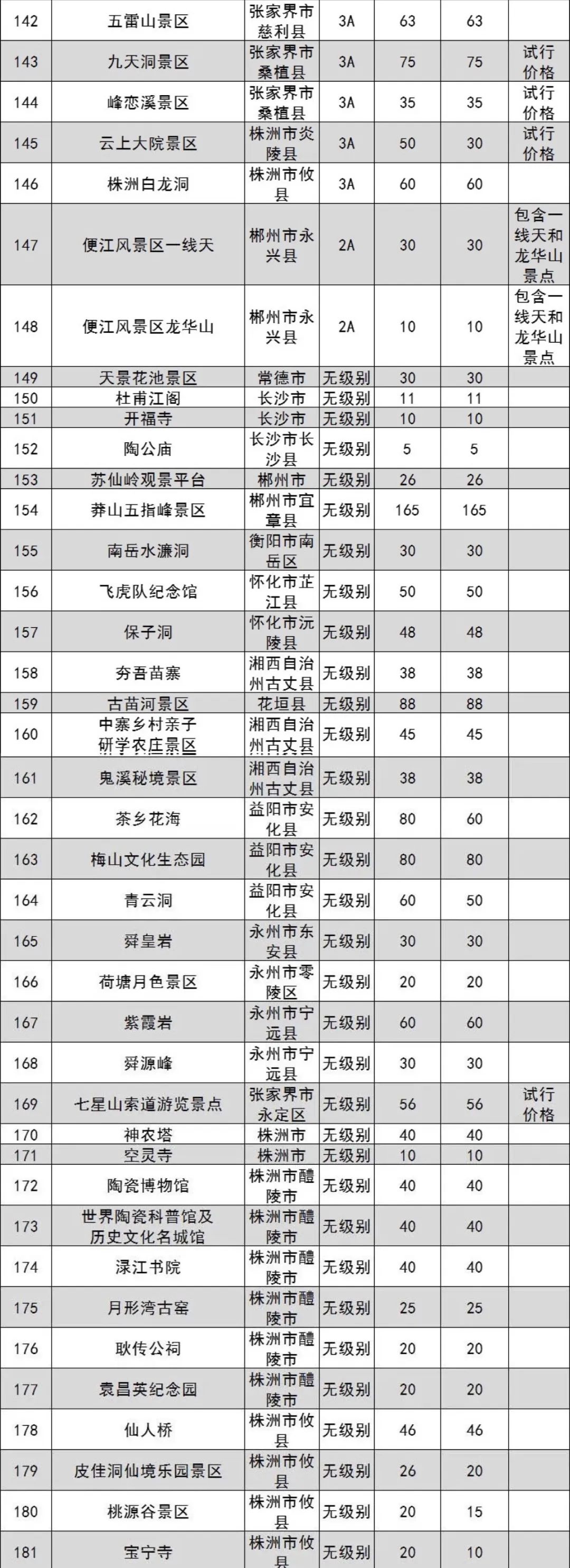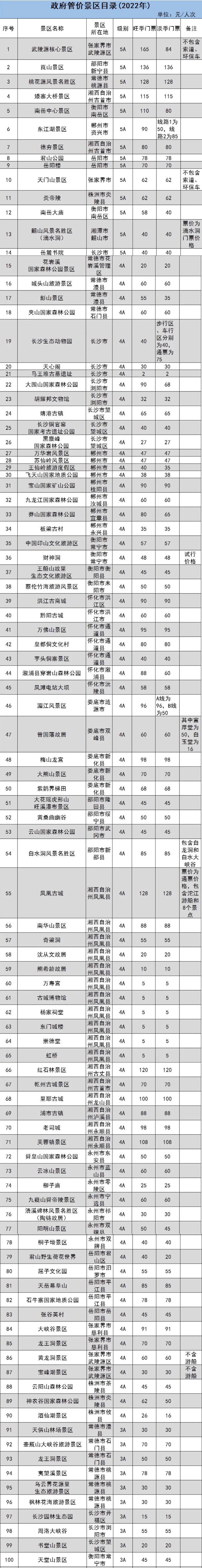 原標題:湖南省政府管(guan)價景區(qu)2022年(nian)門票(piao)出(chu)爐 共181個
