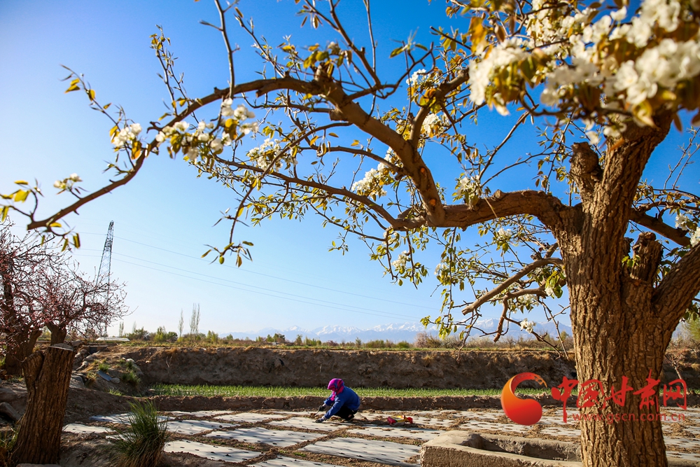 谷雨時節,甘肅省酒泉市肅州區西洞鎮農民搶抓農時,忙碌在田間地頭,遠處的祁連山與近處的田園風光,構成了一副美麗的春日農耕畫卷。