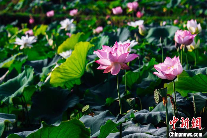 荷花競相開放,嬌艷清新惹人醉。 李南軒 攝