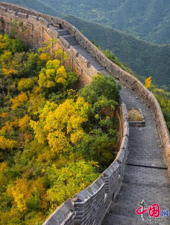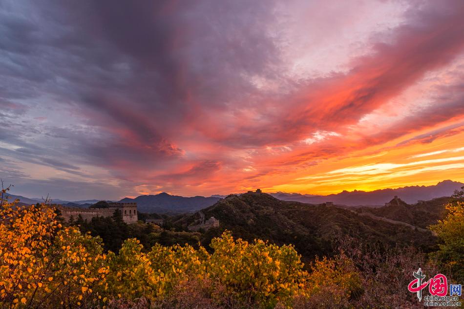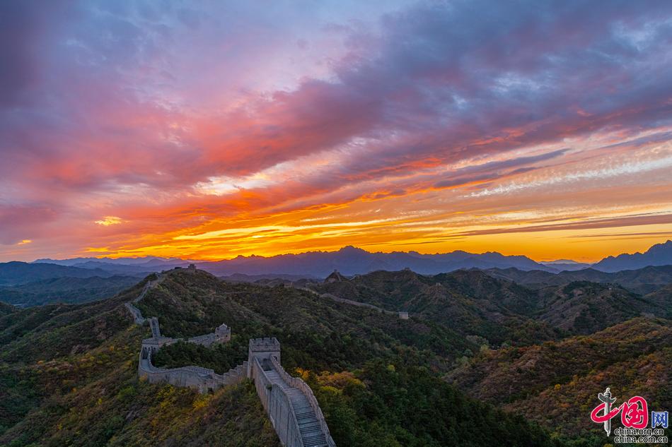 山巒起伏的古老長城層林盡(jin)染,令人驚艷。